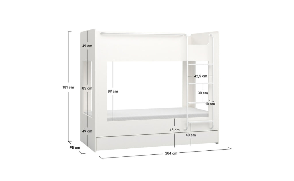 Bunk Bed Cum Single Bed 90x200 Cream Color - Right Sided Ladder