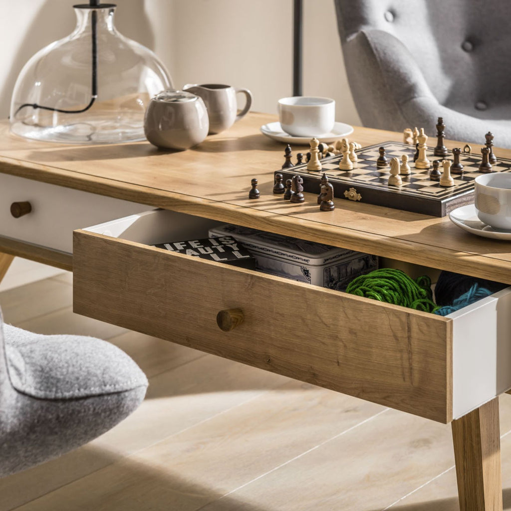 Coffee Table With 2 Drawers - Oak Color