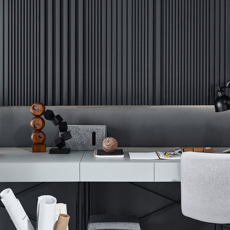 Linerio panels come in three variants, which differ in the width and depth of the rungs. They are available in many shades: natural, mocca, white, grey, and anthracite color.