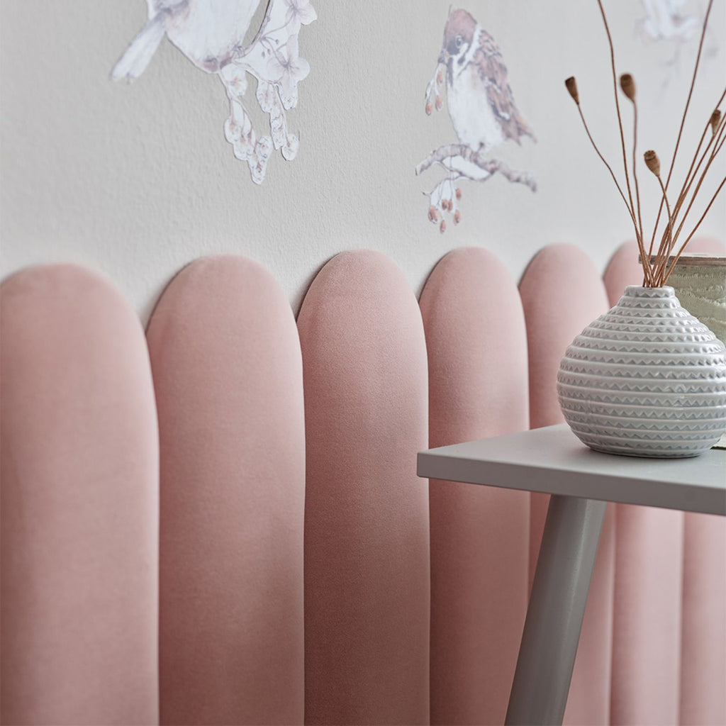 Tall Rounded Oval Upholstered Panel 15x60- Light Pink Velvet Matt Soform Wall Panels